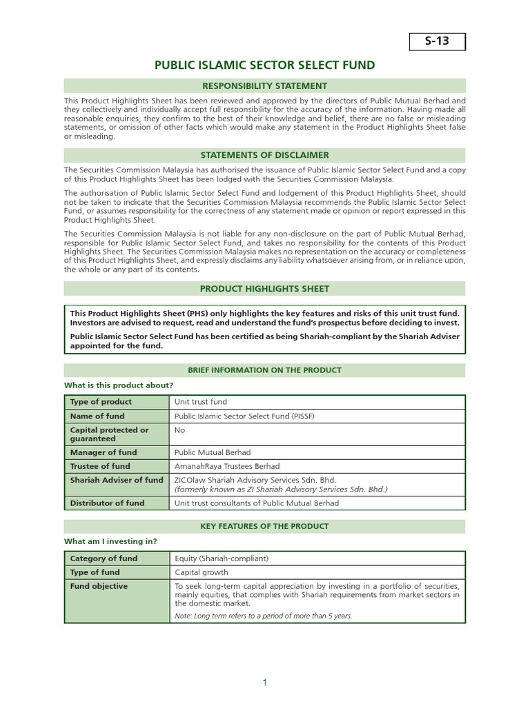Related : Public Islamic Select Enterprises Fund : As at date disclaimer :.